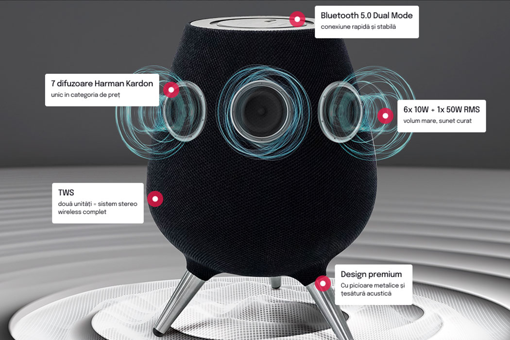 Sunet sculptat în 7 difuzoare Harman Kardon.